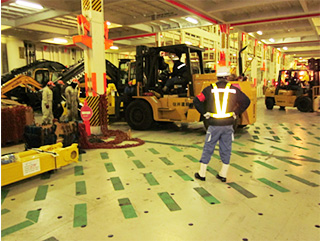 「夜間の荷役中、現業員の移動時に危険を感じることがある」といった機器運転手の意見により安全ベストが導入されました。